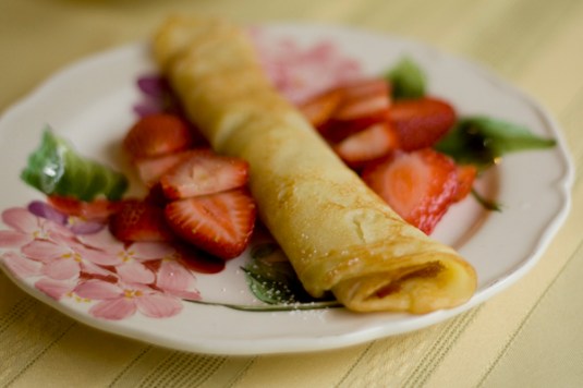 This is one of our favourite desserts. It’s simple, sweet and easy to make. Enjoy the crepes with a glass of milk and some fresh fruit.
